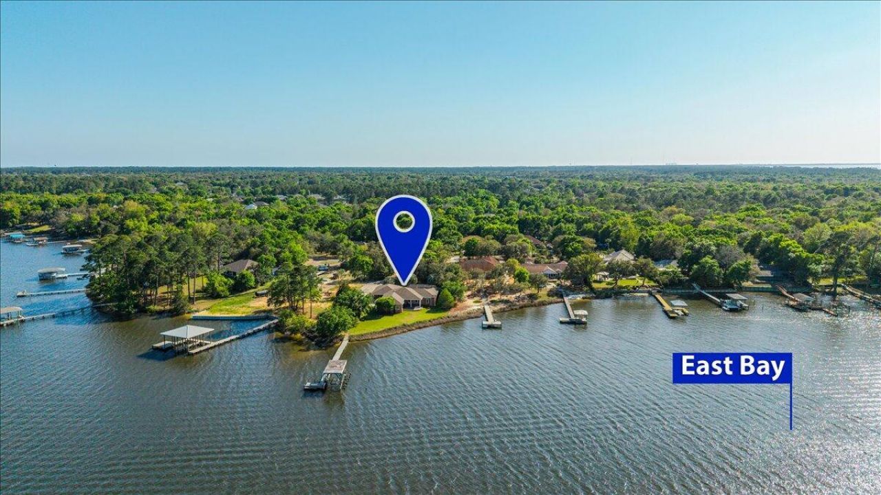 Experience this one-of-a-kind waterfront estate on East Bay, set on 1.3 acres with an impressive 189 feet of shoreline. Exceptional property features a private dock with boat lift, making it perfect for enjoying life on the water. The home offers 4 bedrooms, 2.5 baths, a 3-car garage, plus an additional carport. Step inside to discover soaring 10-foot ceilings and a thoughtfully designed layout. The spacious living room showcases stunning water views and flows seamlessly into the dining area and gourmet kitchen. The chef's kitchen is truly remarkable, featuring a curved breakfast bar, granite countertops, abundant cabinetry, a Wolf gas cooktop,...read more
